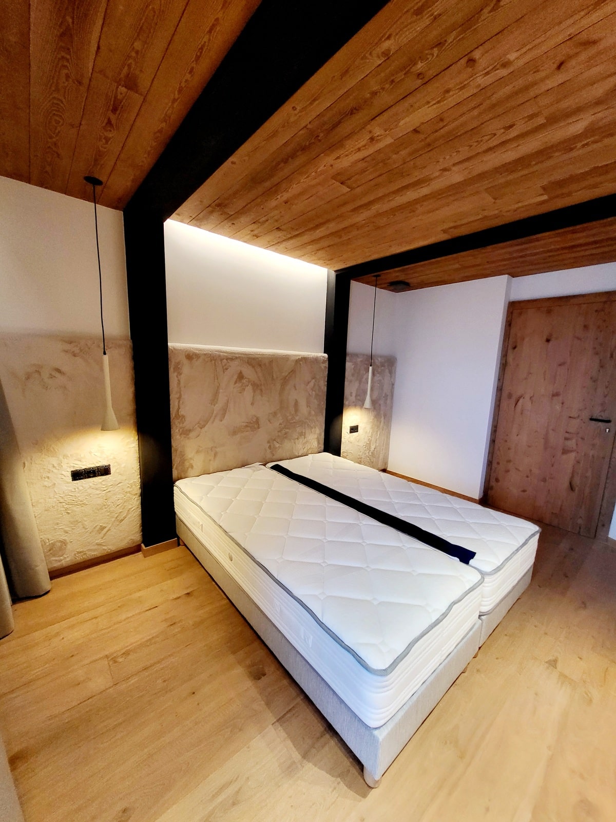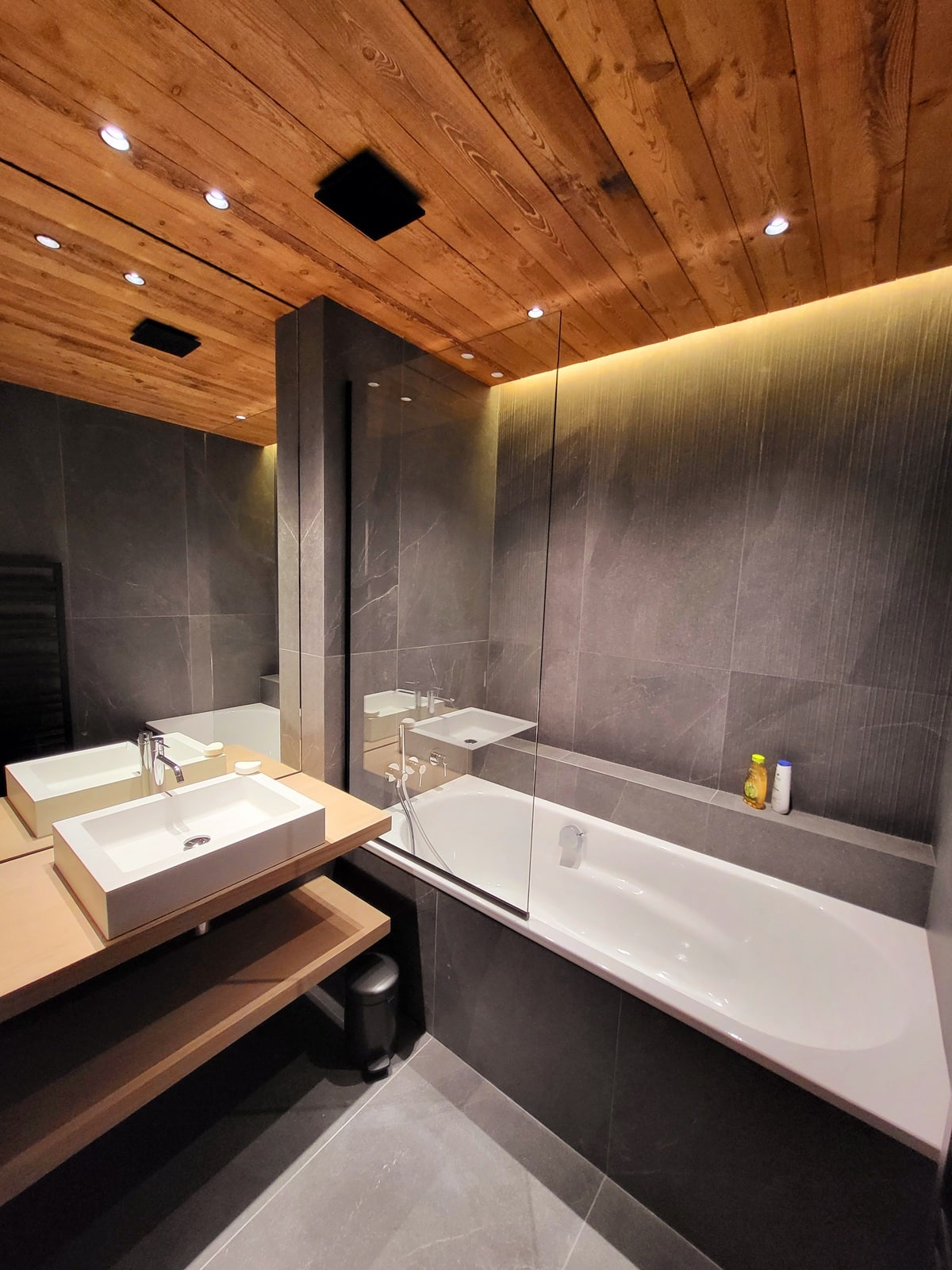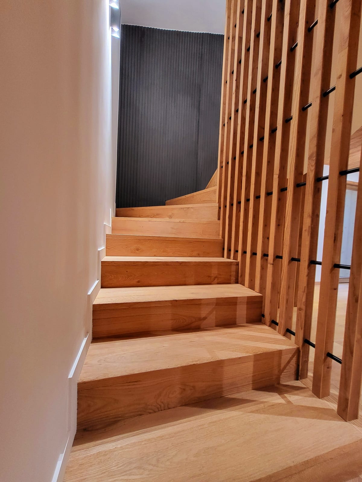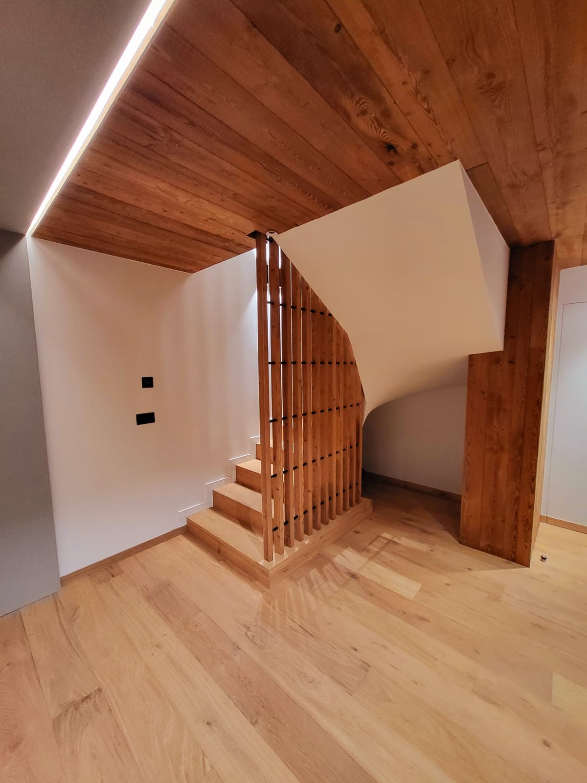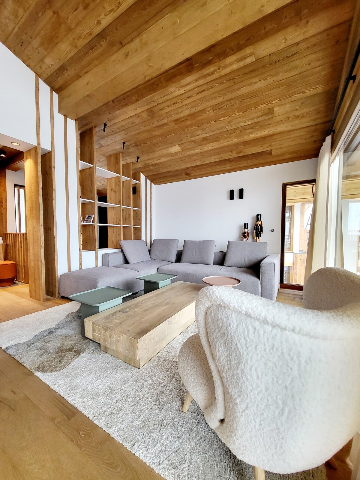 À travers chaque recoin du chalet Houche 1, on retrouve des matériaux nobles, une maîtrise des volumes, et un sens du détail. Escaliers, rangements, panneaux muraux et mobilier ont été pensés pour s’intégrer parfaitement à l’architecture intérieure, tout en mettant en valeur la chaleur naturelle du bois.