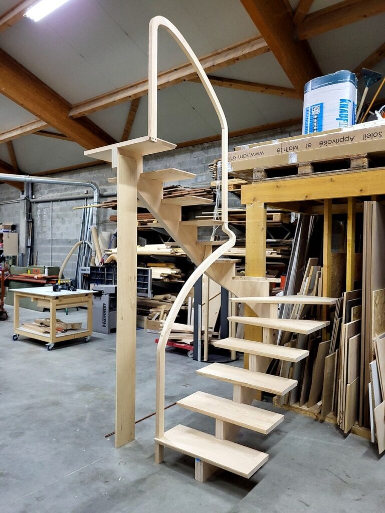 Fabrication d’un escalier cintré en frêne à Saint-Tropez